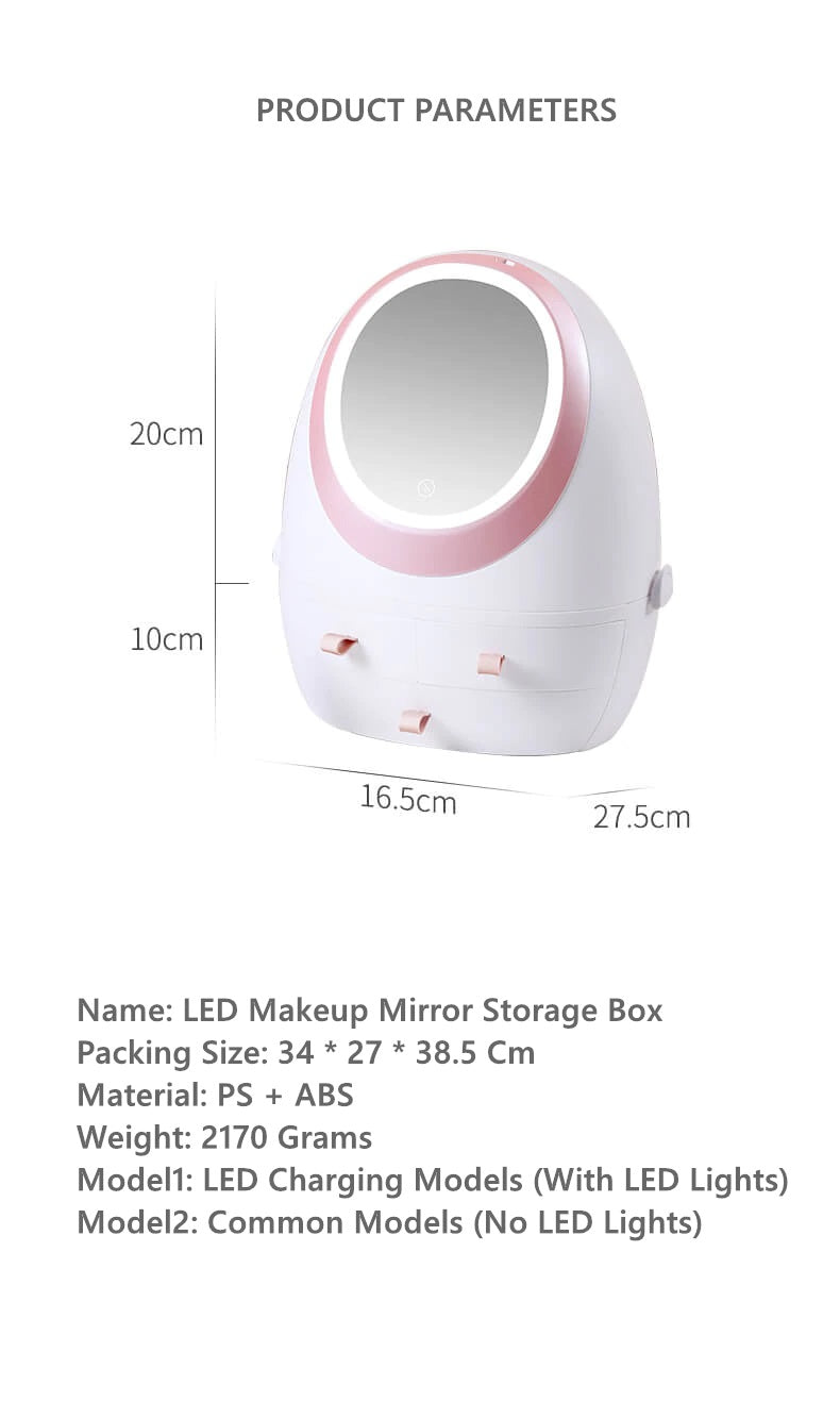 makeup mirror with LED High Quality, Beautiful & Functional镵?br>Stylish, Elegant & Simply Stunning镵?br>shape cute fashion & big Storage Space镵?br>Perfect For Storing Your Makeup And Cosmetics And Jewelries镵?br>Ideal Organize Your Make Up Brushes,Lipstick,Mascara,Cosmetics Skin Care Products Or Jewelries And So On.镵?br>Locate In The Bedroom Dresser And Bathroom Table.