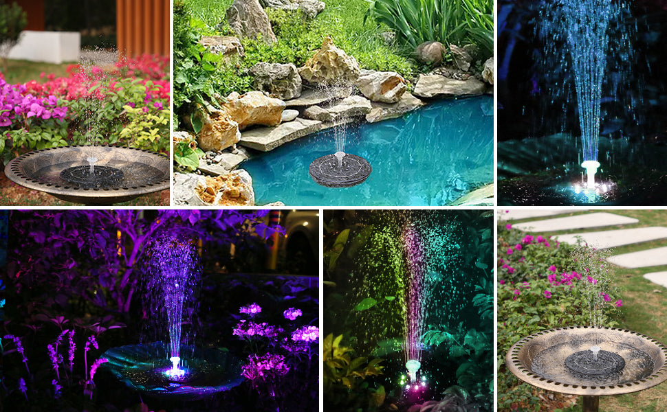 Brand new solar bird bath fountain with lights: 8 brighter LED beads + 6 Integrated LED Nozzle giving your garden a unique and modern design that no one has!